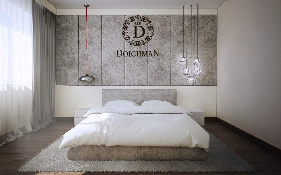 Дизайнерське ліжко зі стіновими панелями в інтер'єрі виготовляється на замовлення.